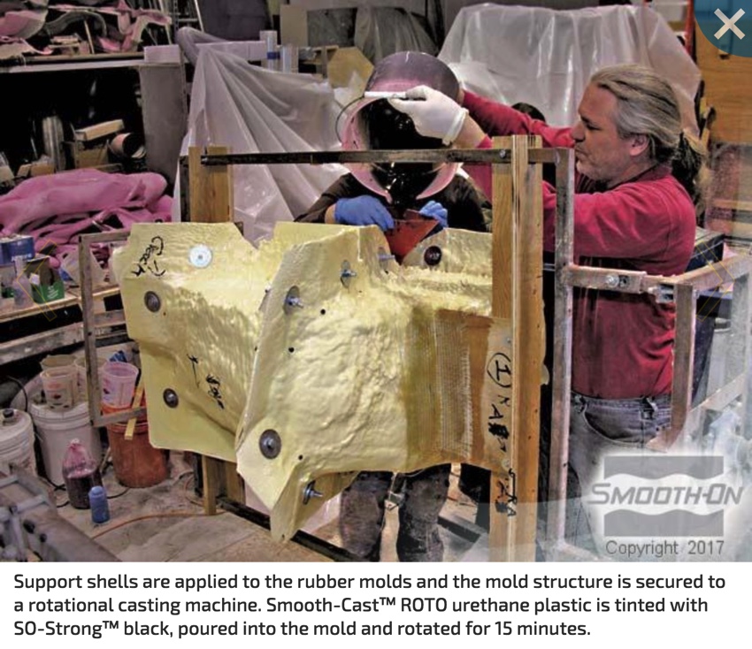 The Theme Strategy: To dramatize the launch of the re-designed model, it was decided that having the Jeep rise into a "rock scape" environment would help convey the rugged durability of the vehicle. The set design requirement meant that over 200 lightweight, realistic looking rocks would have to be created, transported to Manhattan, assembled as a display and then taken away after the event. With the show just weeks away, Bill Klopping (President of Beyond Design) knew that there wasn't time to employ conventional mold making and casting techniques. He drew on his years of theming experience and decided on a spray system that would allow him to make production rubber molds and castings quickly.
